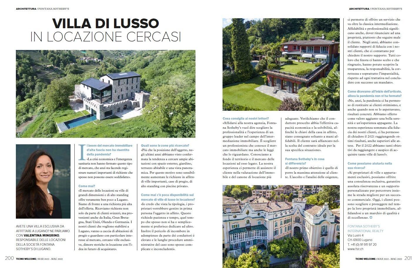 Sotheby's International Realty® and the Sotheby's International Realty logo are service marks licensed to Sotheby's International Realty Affiliates LLC and used with permission. Immobiliare Fontana SA fully supports the principles of the Fair Housing Act and the Equal Opportunity Act. Each franchise is independently owned and operated. No services or products offered by independently owned and operated franchisees are provided by, affiliated or associated with Sotheby's International Realty Affiliates LLC or any of its affiliates.
